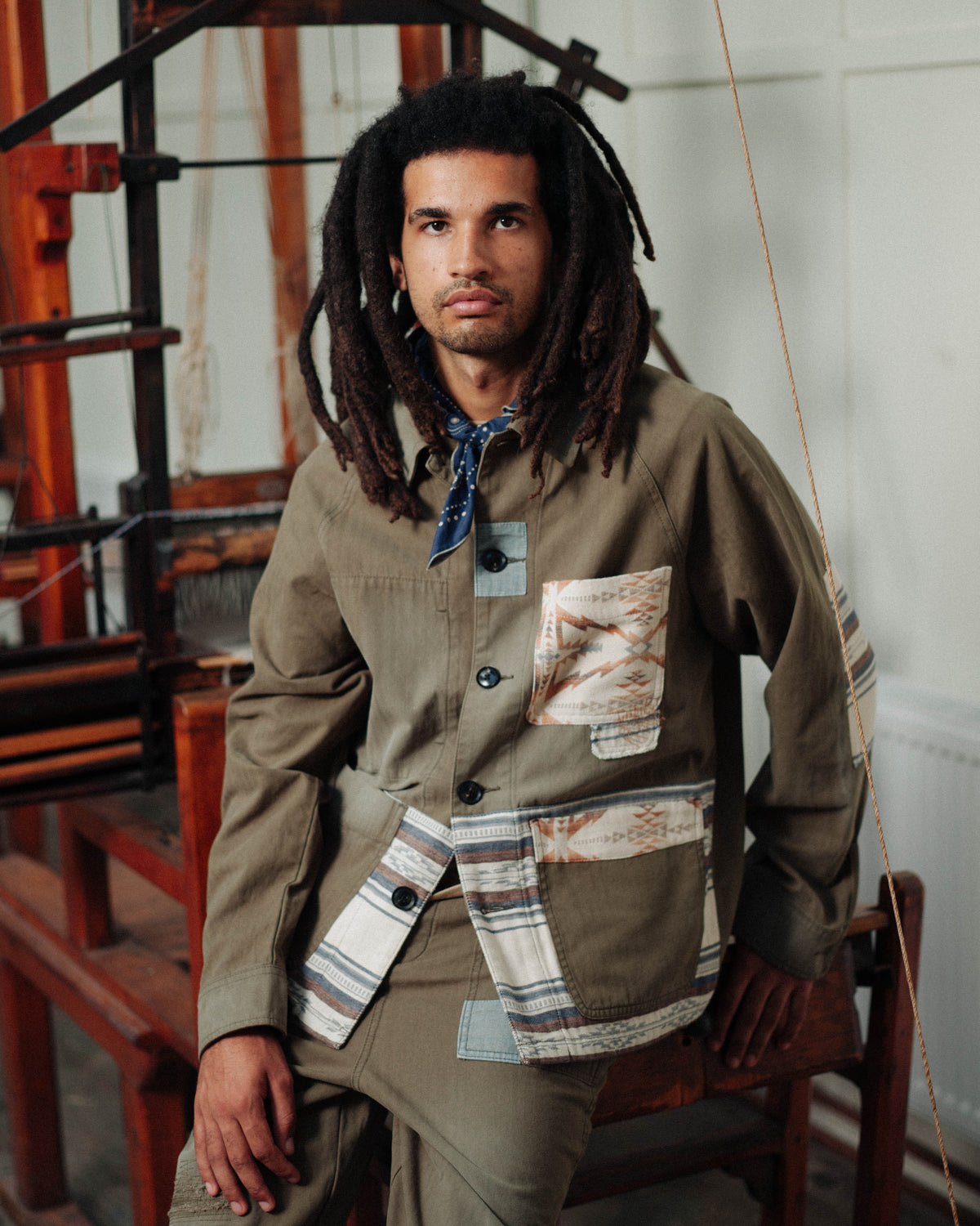 Patchwork-Arbeitsjacke - Olivgrün