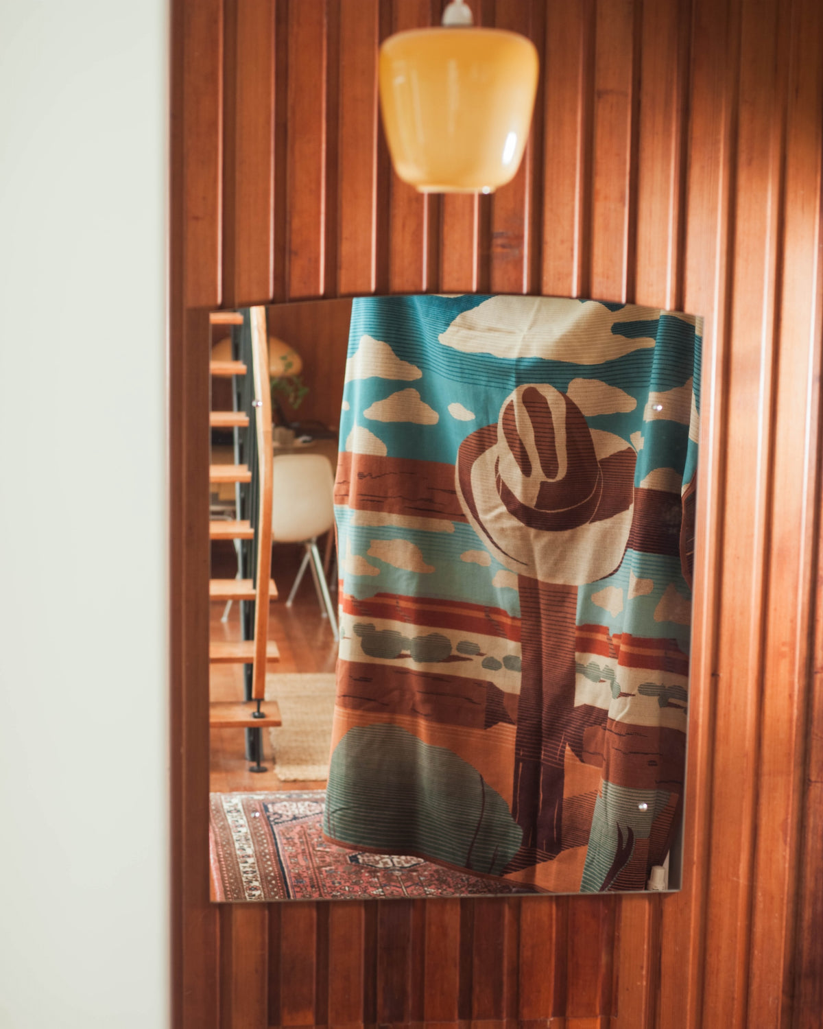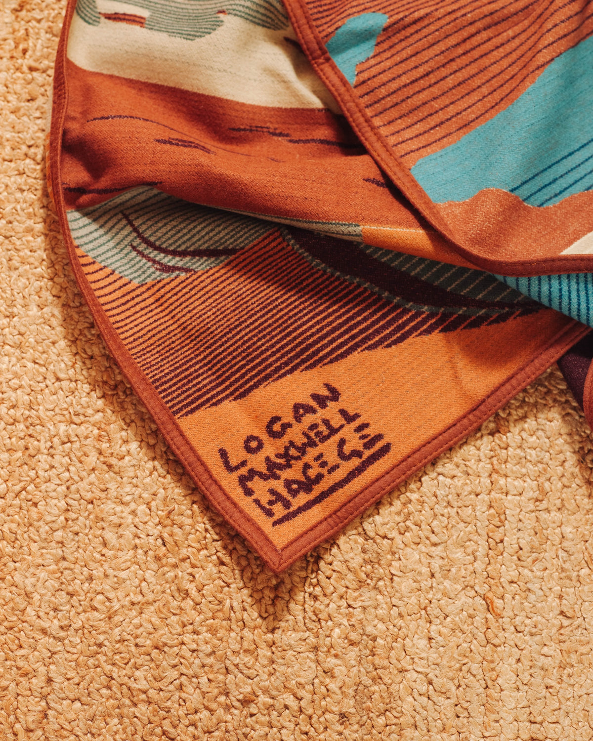 A well-worn hat on a split-rail fence offers a moment of respite for the rider who hung it there. Logan Maxwell Hagege is a Los Angeles-based contemporary artist whose modern visions of the American West use repeating shapes to create a visual narrative for each composition.