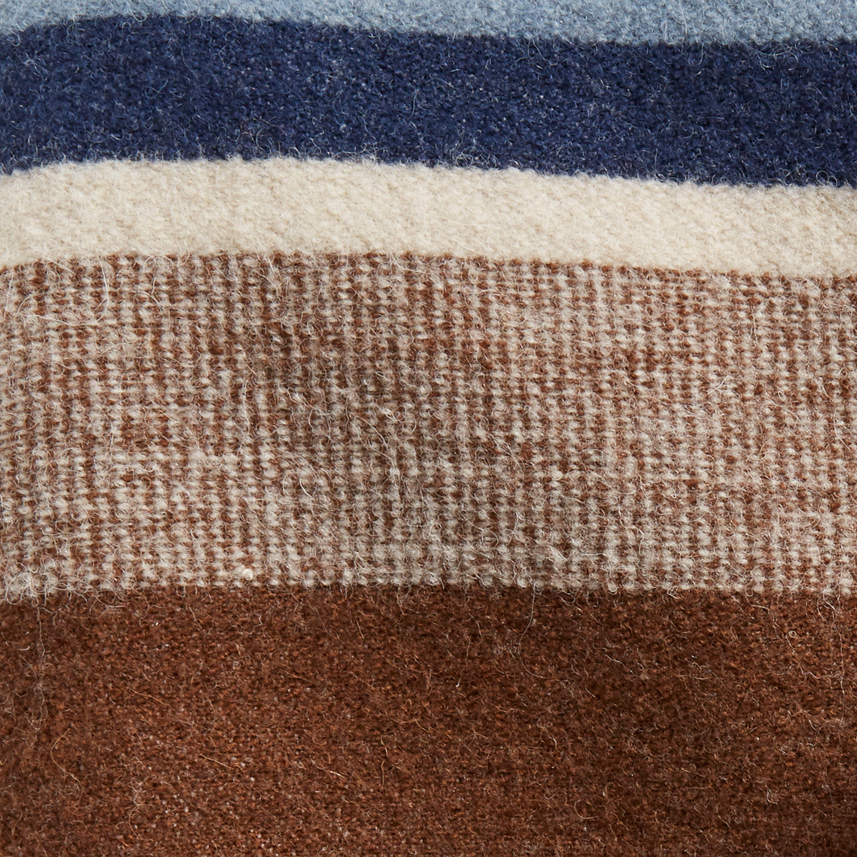 An easy-to-transport wool throw with two different looks: predominantly solid color on one side, with bold stripes on the other. Includes carrier with buckle closures.