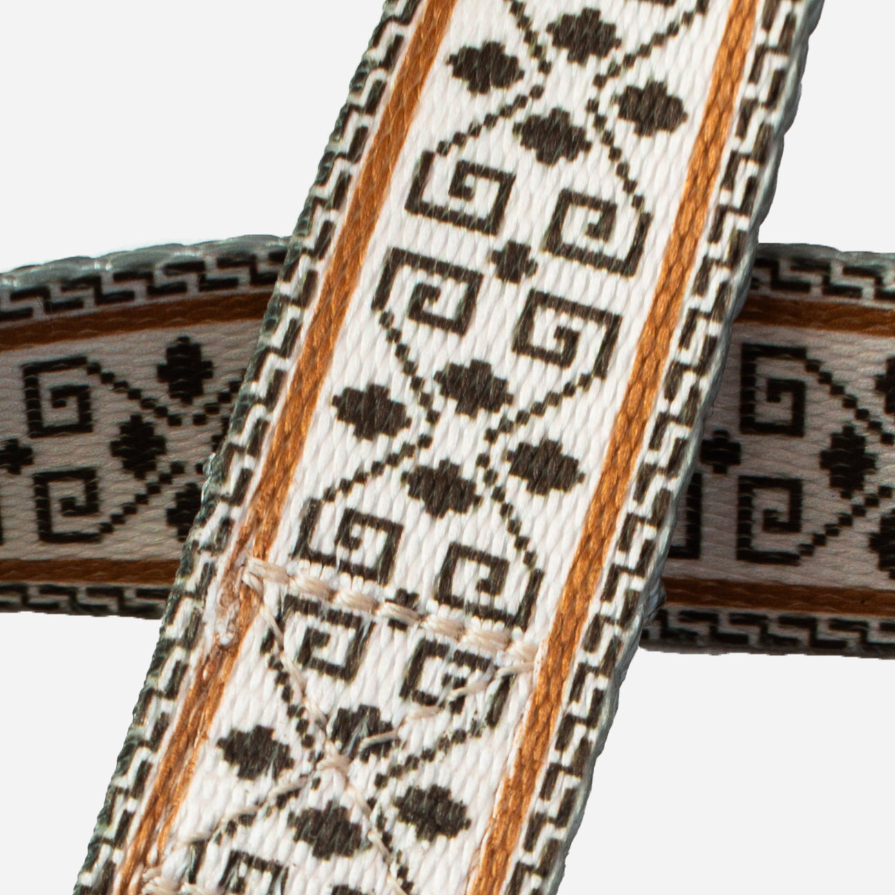 This leash features one of Pendleton’s most popular patterns. A grosgrain ribbon woven with the Westerley pattern is secured to a nylon webbing. It features a self loop handle with antique brass clip. One size. Made in USA.